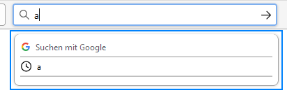 Alles anzeigen/* -------------------------------------------------- */ /* Suchergebnisse unter Suchfenster mit blauen Rahmen */ /* -------------------------------------------------- */ #PopupSearchAutoComplete { background: #FFFFFF !important; border: 2px solid #7FB0EF !important; box-shadow: 2px 2px 2px #787878 !important; border-radius: 6px !important; --panel-shadow: none !important; --panel-border-color: none !important; } /* ------------------------------------ */ /* Abstand des Vorschlagfensters ändern */ /* ------------------------------------ */ #PopupAutoCompleteRichResult, #PopupSearchAutoComplete { margin-top: 10px !important; }Jetzt wäre noch der übliche versetze Schatten unten/rechts gut, den ich nicht hinbekommen habe, und die Größe/Länge des Auswahlfensters dem der Searchbar anzupassen.