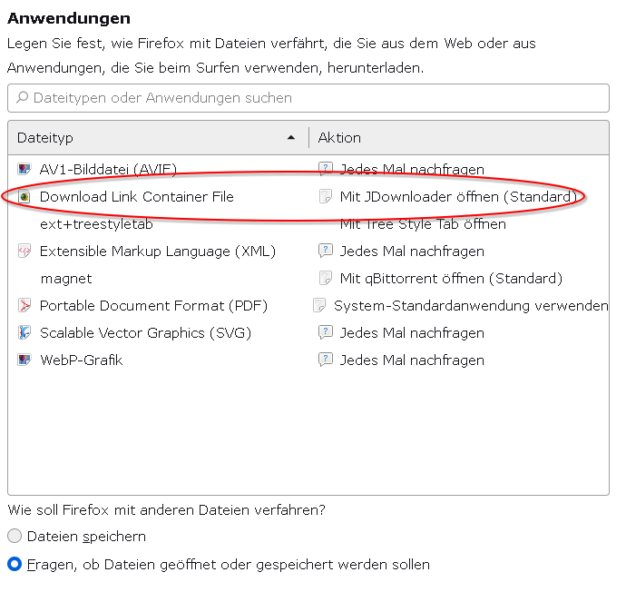 In den Firefox-Einstellungen unter Anwendungen steht es aber eigentlich korrekt drin: