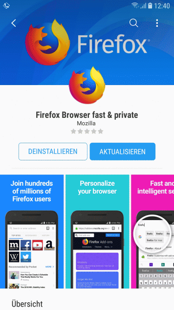 Habs jetzt auch mal versucht, aber selbst wenn ich unter Standard-App/Browser-App den Firefox auswähle und die Standardwerte für Firefox, Samsung-Browser lösche wird bei dem Öffnen einer html-Datei nur der HTML-Viewer und Samsung-Browser zur Auswahl angeboten.