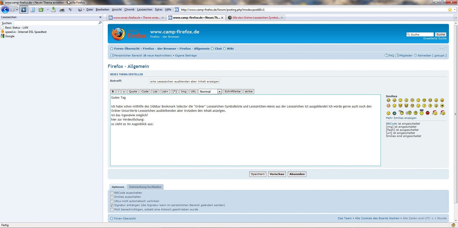 Ich habe schon mithilfe des Sidebar Bookmark Selector die "Ordner" Lesezeichen-Symbolleiste und Lesezeichen-Menü aus der Lesezeichen-Liste ausgeblendet und ich würde gerne auch noch den Ordner Unsortierte Lesezeichen ausbleibenden aber trotzdem den Inhalt anzeigen.