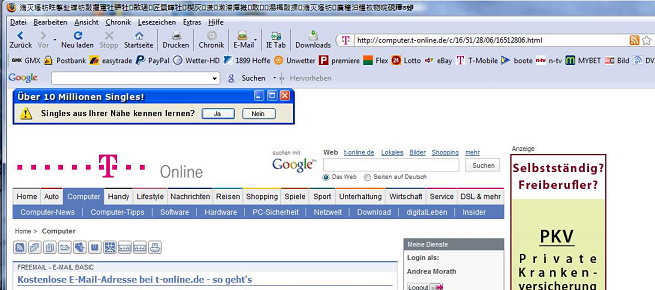Wie kommt es zu den Asiatischen Schriftzeichen im Rahmen von Firefox?