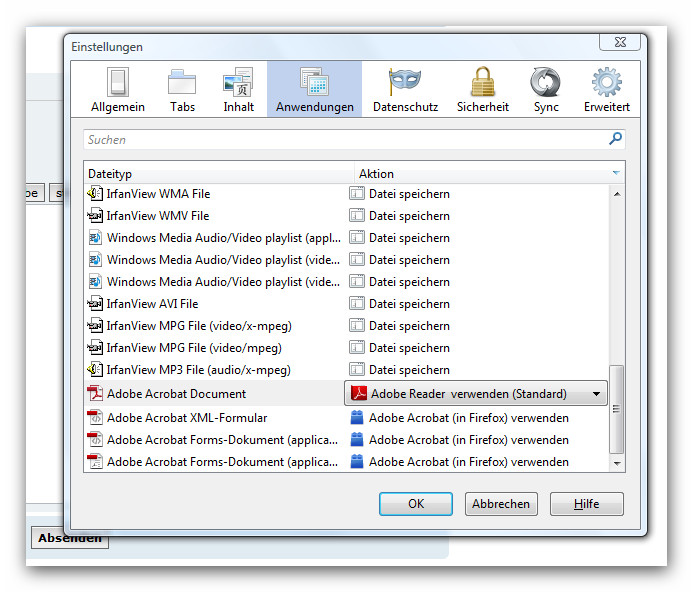 ich habe zuerst jetzt einmal alle Einträge auf "Adobe Acrobat (in Firefox) verwenden" umgestellt.