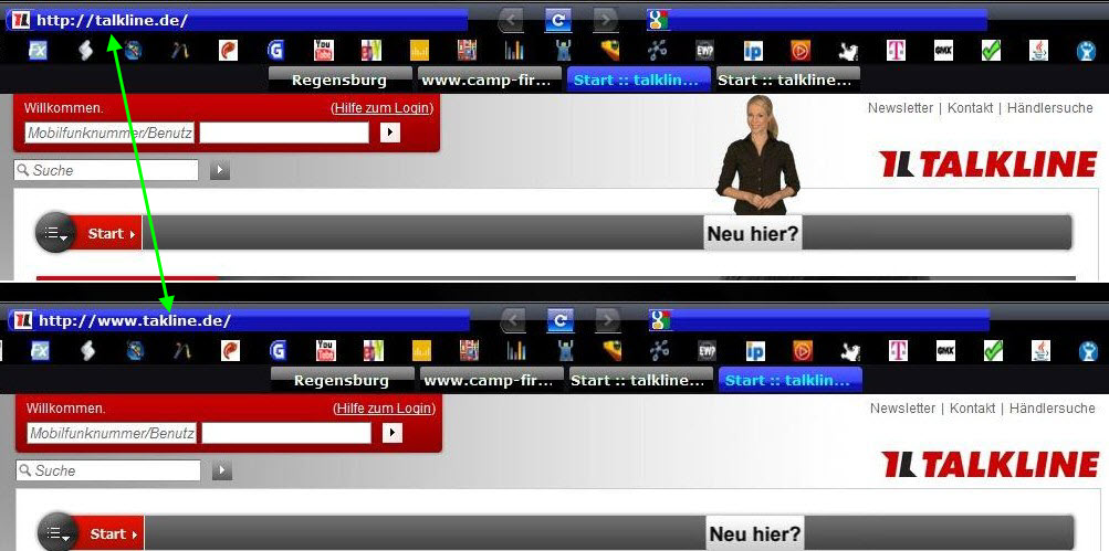 Also bei mir werden beide Seiten angezeigt, einzigster unterschied, das mädl wird bei http://www.takline.de/ nicht angezeigt.....