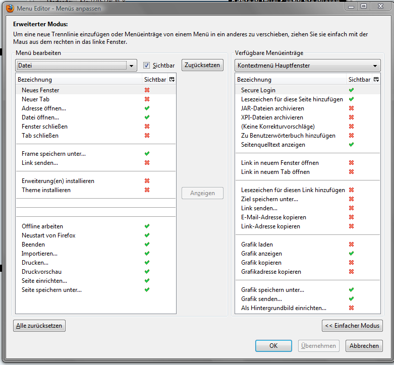 Des kannst alles ausknipsen bei bedarf und zwar damit >>>> Menu Editor 1.2.6 -