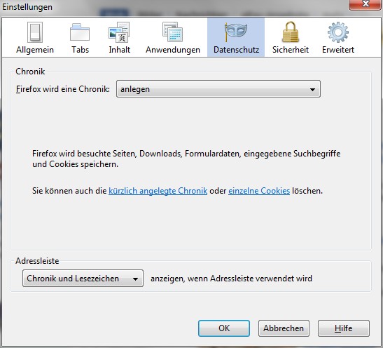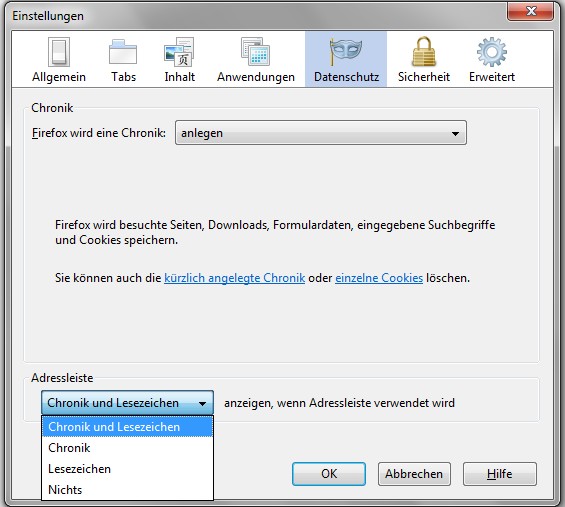 Am Dropdown für die Chronik kann ich mir nur aussuchen
