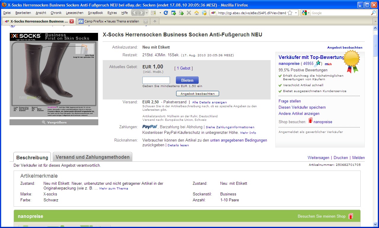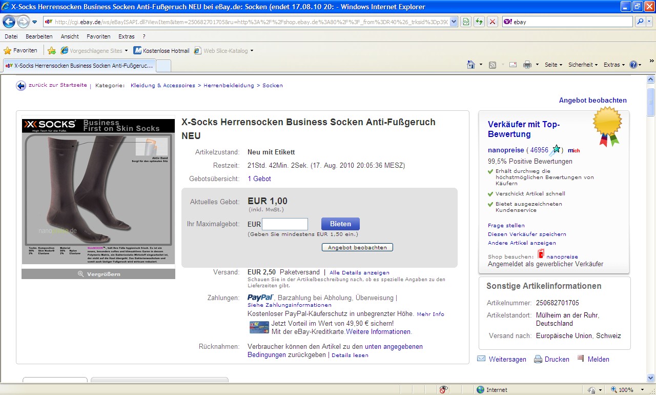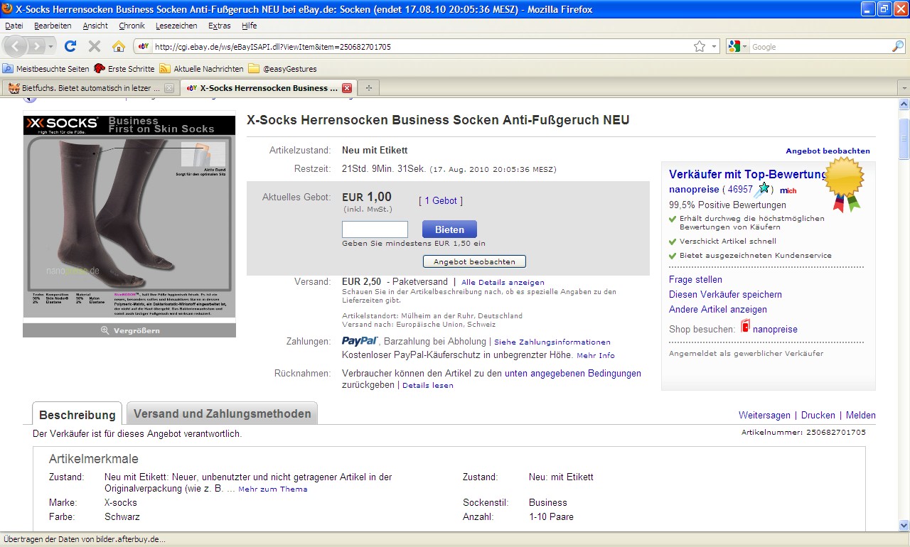 Wenn ich auf eine ebay Seite gehe wird mir am rechten Rand kein 2.es Feld mit den "Sonstige Artikelinformationen" wie Artikelnummer und den Artikelstandort angegeben.