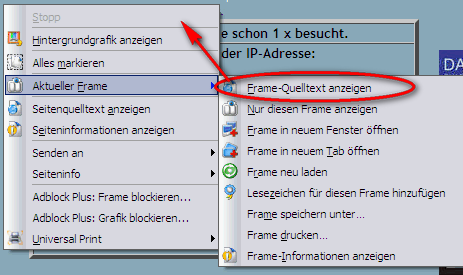 Kontexmenü "Frame-Quelltext anzeigen" auf oberste Ebene zu setzen. -