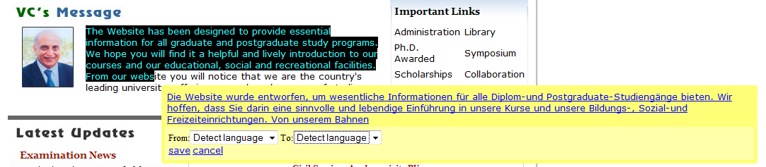 in einem Popup übersetzt anzeigt mit weiteren Einstellungsmöglichkeiten.....