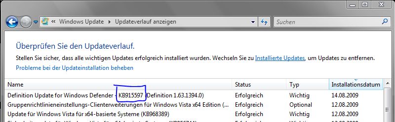 Sicherheit > Update > Updatechronik anzeigen