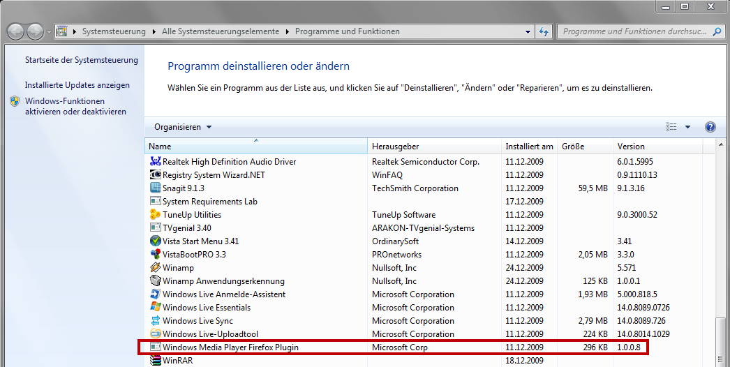 wird auch gelistet unter Programme und Funktionen in Win 7, schau mal ob es da vorhanden ist?