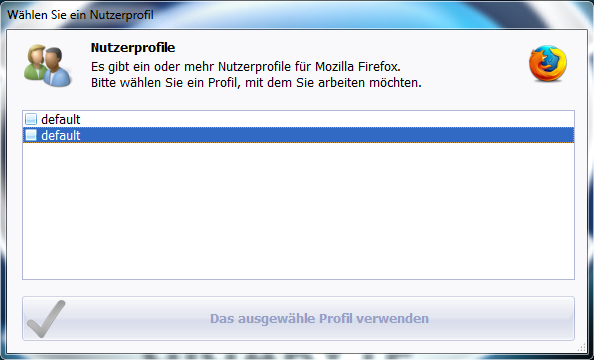 ich setze FF4 unter Win7 Ulti ein. Da FF4 nach rd. 1 Woche Einsatz immer langsamer wurde habe ich ein neues Profil angelegt und das Alte erstmal nur umbenannt. FF startete und lief besser also habe ich das Umbenannte gelöscht. Jetzt wieder ein paar Tage später kommt jedesmal ein Fenster hoch wenn ich FF beendet habe welches Profil benutzt werden soll. Es steht zweimal "default" zur Auswahl. Klicke ich eines an und bestätige verschwindet die Abfrage.Habe im Profilmanager nachgeschaut und dort steht nur ein Profil.