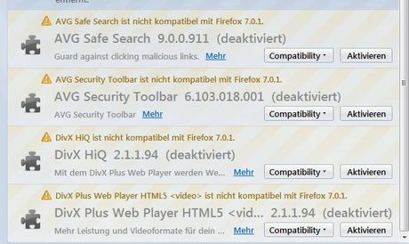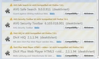 meine gesammten Erweiterungen (bis auf 2 deaktivierte) finde ich nicht mehr, dass waren etwa 15, und auch das Erscheinungsbild ist anders, steht jetzt auf "Standard". Die Pluggins sind alle vorhanden.
