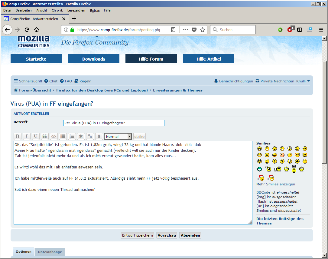 Vielleicht hilft es ja dem Einen oder Anderen oder den Entwicklern bei der Fehlersuche.