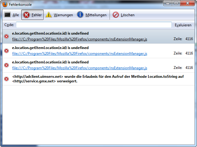 Hier mal die Nachricht aus der Fehlerkonsole.