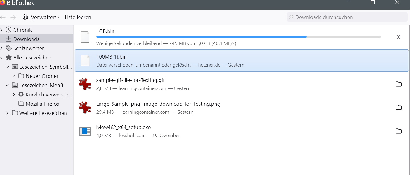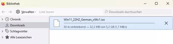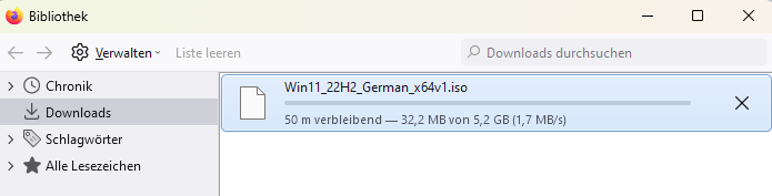 Downloadfenster bleibt offen, und der Download läuft weiter: