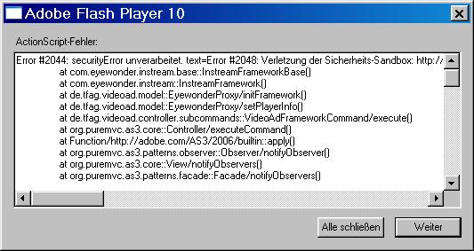 Ich bekomme oft diverse Fehlermeldung bei vielen meiner besuchten Webseiten vom Flash Player (siehe Beispiele Anhang).