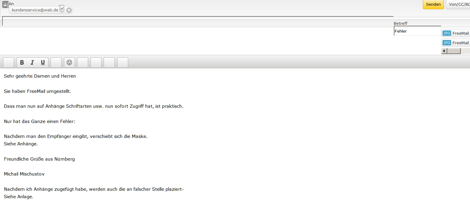 Fügt man Anhänge hinzu, werden auch die an falscher Stelle platziert.