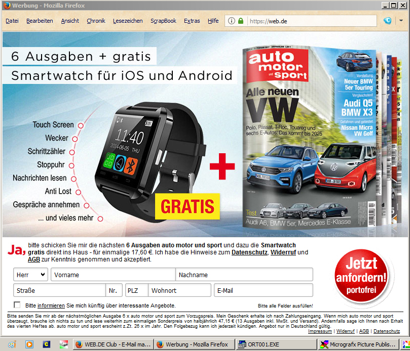 Wie ich dieses Mal zum Herunterladen auf Web.de gekommen bin, ist mir immer noch schleierhaft,