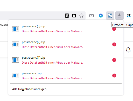 Ich hatte versucht eine Zip-Datei von Nirsoft herunter zu laden. Speichern wurde angefangen, aber dann abgebrochen. Es kamen keine Meldungen auf Viren/Malware.