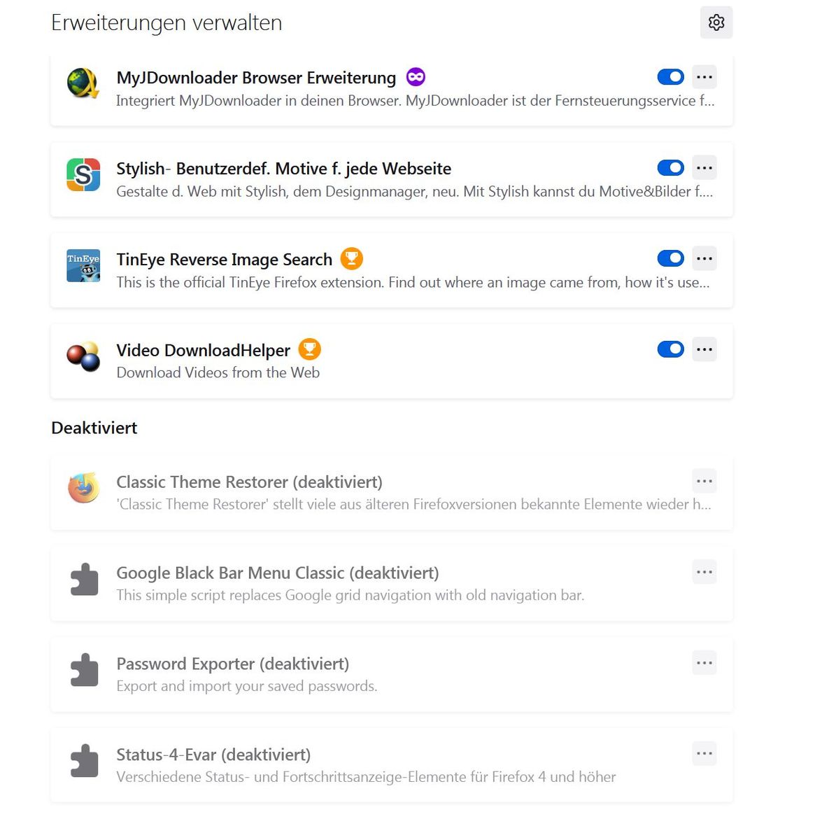 die Addons wie status 4 evar war gut oder der Passwort Exporter das hätte nicht aufhören sollen