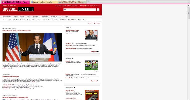 Und noch ist mir etwas aufgefallen. Wenn ich mit dem fox spiegel.de aufrufe, ist ganz oben ein dicker Balken mit Werbung.