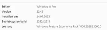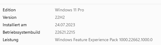 Mein Win11 Pro ist ganz frisch, ohne jegliche Veränderung, auf einem neuen PC aufgesetzt worden.
