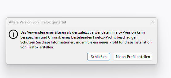Sowohl im Firefox und Win 11 war mein Firefox nicht als Standardbrowser eingestellt, obwohl ich das bei der Neuinstallation geprüft habe und den Haken gesetzt habe.