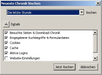 Ich bestätige nämlich bei jedem Beenden von Firefox bei der Abfrage meines Add-Ons "AskforSanitize" auch die von mir standardmäßig angehakten Lösch-Optionen "Neueste Chronik löschen > Aktive Logins" und "Cookies".