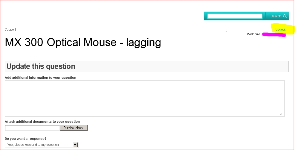 Vielleicht an dieser Stelle noch ein interessantes Detail über Logitech: Die haben ja verschiedene Support-Wege. Ich habe für deren Forum und für deren direkten Frage-/Antwort-Support durch Logitech-Mitarbeiter dieselben Zugangsdaten. Ich kann aus einem Bereich in den anderen gelangen, ohne mich neu einloggen zu müssen. Das geht allerdings nicht so ganz leicht, dass man einfach einen gut sichtbaren Button wählen könnte, aber es geht mit Umwegen. Beim Mitarbeiter-Support heißt übrigens die An-/Abmeldung Login/Logout, während sie im Forum Sign in/Sign out heißt. Das Witzige ist, dass Sign in und Sign out problemlos funzen, wobei allerdings Sign out nicht ein einmal geöffnetes Mitarbeiter-Support-Fenster schließt. Das bleibt weiter eingeloggt und lässt sich eben nicht ausloggen (siehe gelbe Markierung in der Anlage)! Der Mauzeiger verwandelt sich beim Schweben über dem rosa unkenntlich gemachten Namen, wie sich das für einen Link gehört; beim Schweben über "Logout" verwandelt er sich nicht. Da kann ich eigentlich nur noch den Firefox schließen.