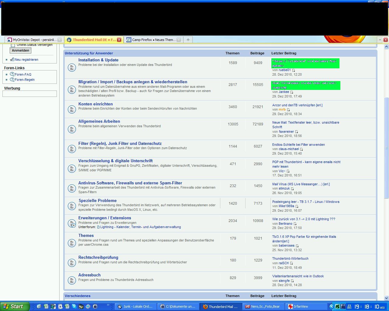 wäre es für interessierte Betrachter nicht wesentlich übersichtlicher, wenn "unter letzter Beitrag" nicht nur Datum und Uhrzeit+Name des Schreibers erscheinen würde, sondern auch der Betreff der Frage, so wie im Thunderbird Forum (siehe Anhang)? Dann kann man wirklich gezielt die Beiträge lesen, die einen interessieren und muss sich nicht durch jedes Thema durchklicken