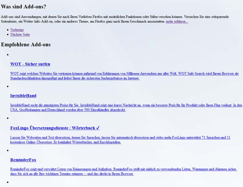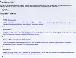 Die ADD-ONS SUCHEN Seite wird nach Neuinstallation des Browers wie folgt falsch dargestellt und ist unbrauchbar.