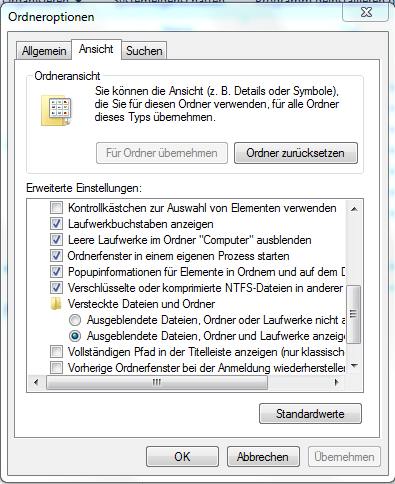 unter Win 7: Start -> Computer -> Organisieren -> Ordner- und Suchoptionen -> Ansicht
