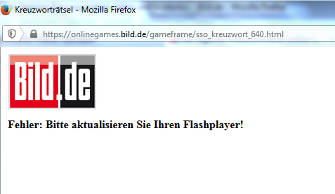 Aber wenn ich jetzt z.B. die BILD Seite aufmache, kommt die Meldung, dass ich den Flash Player aktualisieren soll. Auf Chrome funktioniert die Seite aber. Hängt das vl. damit zusammen, dass der shockwave player deaktiviert ist? -