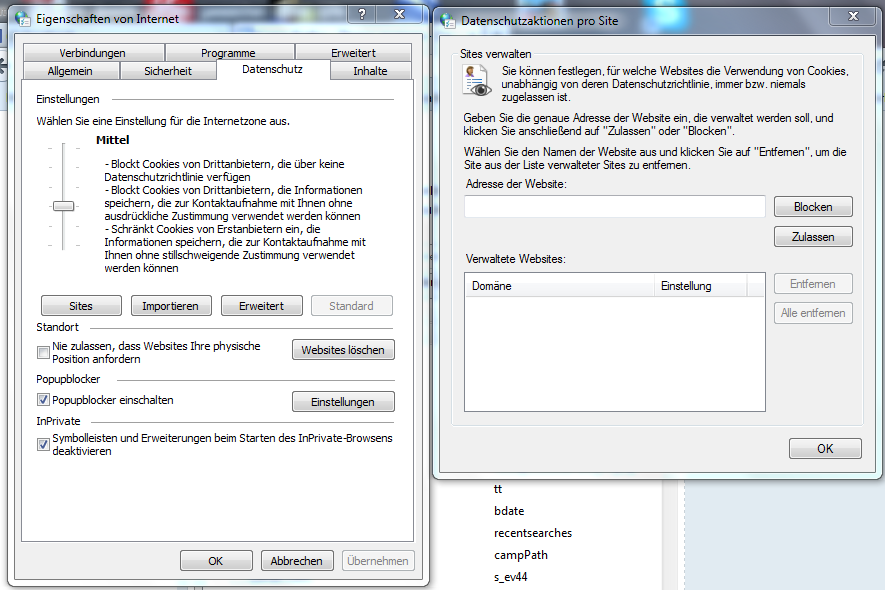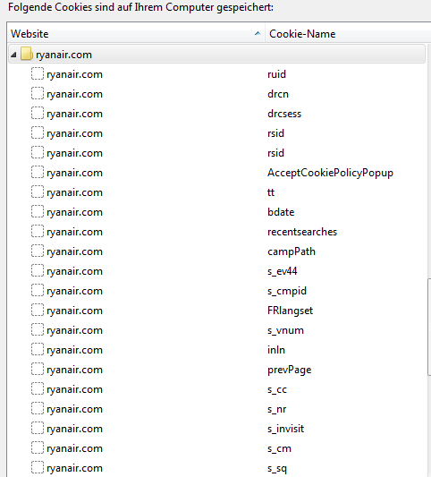 Erstmal danke. D.h., wenn ich im Fenster rechts die Web-Adresse von z.B. RyanAir eingebe, werden die Cookies dauerhaft gespeichert und auch nicht vom Antivirenprogramm/Firewall geblockt oder eliminiert.