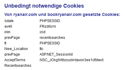 ich kann bei RyanAir keine Flüge buchen, da am Schluss die Zahlung nicht akzeptiert wird, obwohl das Konto ausreichend gedeckt ist. Kann das daran liegen, dass FF die absolut notwendigen Cookies nicht speichert? Im IE funktioniert es allerdings auch nicht.