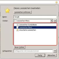 Alles anzeigen/* Eintrag "Lesezeichen-Symbolleiste" aus Bookmark Panel entfernen */ #ditBMPanel_toolbarFolderItem { display: none !important } /* Eintrag "Unsortierte Lesezeichen" aus Bookmark Panel entfernen */ #ditBMPanel_unfiledRootItem { display: none !important }