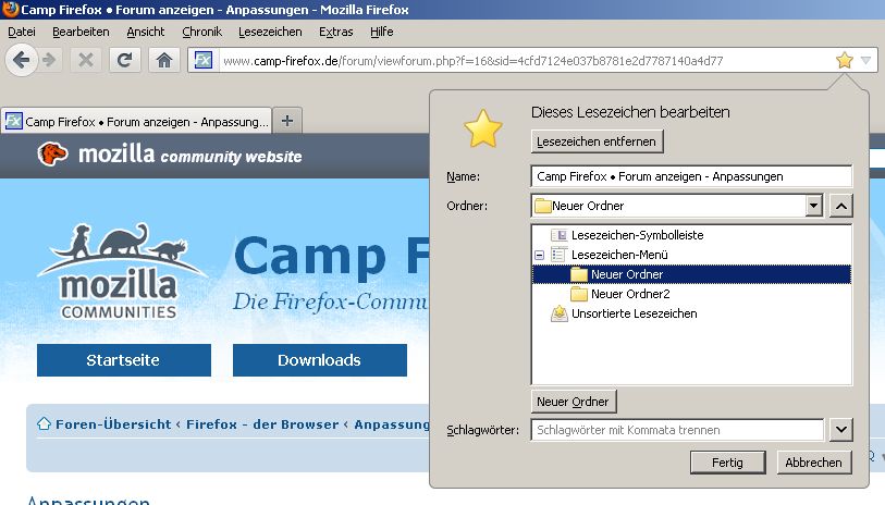 Mit CSS-Codes kann die Oberfläche des Firefox umgestaltet werden. Sie müssen entweder in die firefoxeigene Datei userChrome.css eingetragen werden oder in die Erweiterung Stylish. Ob man auch die Hintergrundfarbe (background-color) eines Lesezeichens ändern kann, weiß ich nicht, würde mich aber auch interessieren.