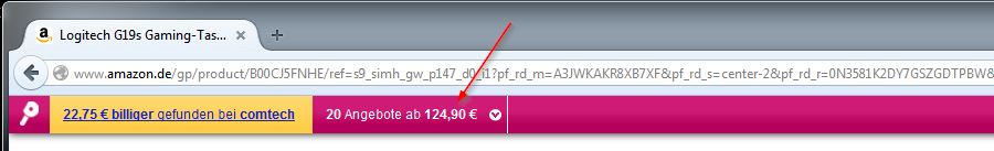 Ja, stimme Dir zu. Habe den Vorschlag mit dem nagelneuen Profil und nur diese Erweiterung schon getestet: gleiches Ergebnis. Habe das AddOn von Preisvergleich.de dann mal installiert unter einem nagelneuen Profil: gleiches Ergebnis.