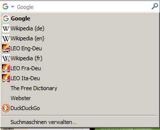 Bisher wurden die installierten Suchmaschinen untereinander angezeigt, mit Bezeichnung.