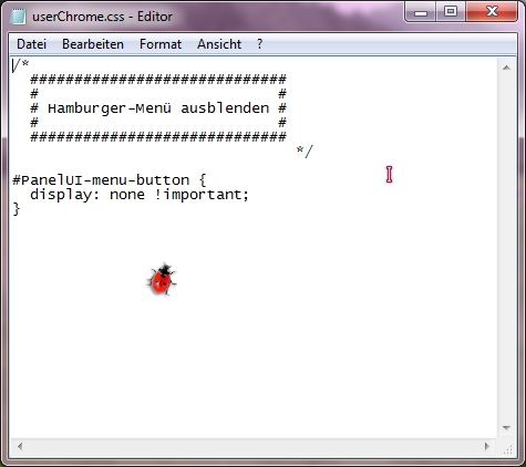 Dann schließt du die Datei und speicherst sie als userChrome.css ab.