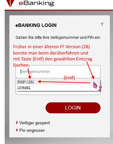 Es hat mal geklappt. Wenn man mehrere Begriffe im einen Eingabefeld hatte und einige davon gezielt löschen wollte, so fuhr man mit den Mauspfeil auf dessen Eintrag und drückte dann die Taste [Entf] und der angewählte Eintrag war gelöscht. Leider habe ich bemerkt das in der Aktuellen Version von FF das so nicht mehr funktioniert. Habe auch eine Erweiterung getestet (Form History Control 2). Leider komme ich da auch nicht auf dieses Ergebnis.