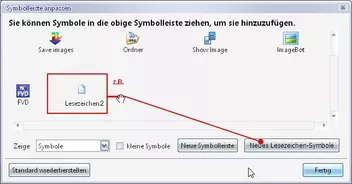 Wenn man auf "Anpassen..." geht so sieht man im Browser einen Bereich mit der Bezeichung "Lesezeichen-Symbole"