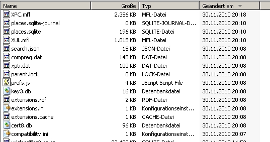Jetzt beim Start von FF wurden z. B. diese Dateien geschrieben: