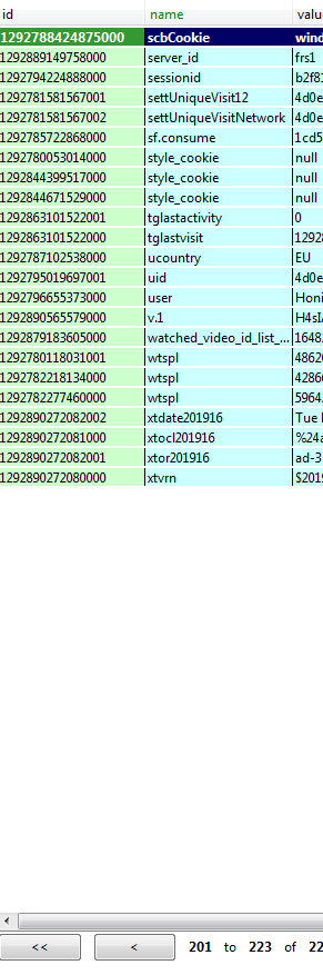 Die permissions.sqlite habe ich auch schon angeguckt, leider konnten sie mir nicht weiterhelfen. Die Knusperdinger, die ich suche, sind so flüchtig ähh brösmelig um beim Bilde zu bleiben, dass sie gar nicht erst gespeichert werden und ich demzufolge auf den FF Cookiemanager via Interface zugreifen müsste, was mir bis jetzt nicht gelungen ist, da ich nicht weiss ob ich mit Java das Interface ansprechen kann, oder ob es ggf eine andere Lösung gibt...