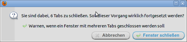 Aber wie gesagt passt es ja noch. Wundert mich jedoch, denn meine Schrift in Ubuntu ist nicht so groß wie die in den Menübuttons.Bird: Ich meine die Buttons von den Firefox Menüs. Und das die Scrollbar ein Bug von Firefox ist nehm ich so nicht hin, denn wie gesagt mit der vorletzten Version von Silvermel ist die Scrollbar von Firefox 5 sichtbar. Also müsste man mal schauen wo die Unterschiede liegen zwischen Deinen beiden Versionen um zu sehen wo es bei der neuesten klemmt