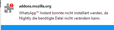 Ich benutze den Nightly als portable Version. Habe jetzt auch gemerkt, dass ich Addons nicht aktualisieren kann. Da gibt es die Meldung das beim Installieren ein Fehler aufgetreten ist. Auch das Entfernen von Addons ist nicht möglich, nur das deaktivieren.