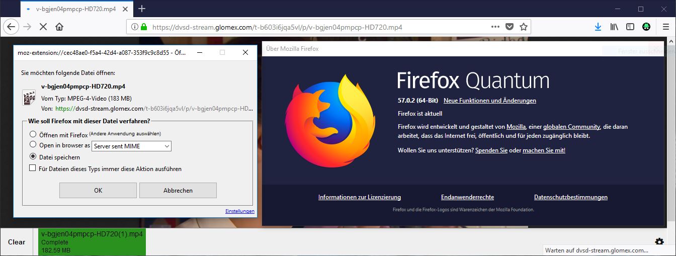 Na so was verflixtes. Der Vorführeffekt zeigt mir 0 Bytes mit Firefox Quantum 57.0.2.