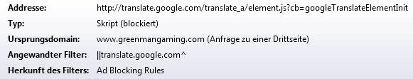 mache ich den Vorschlag das Skript / Adresse: http://translate.google.com/translate_a/el…lateElementInit einfach blockieren.