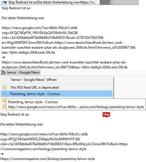 ein Beispiel: Mit Hilfe der Erweiterung Skip Redirect werde ich auf die Originalseite weitergeleitet.