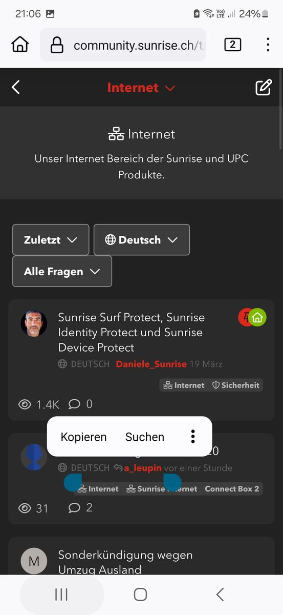 Beim Aufruf der Seite community.sunrise.ch habe ich folgenden Screen auf dem Smartphone: